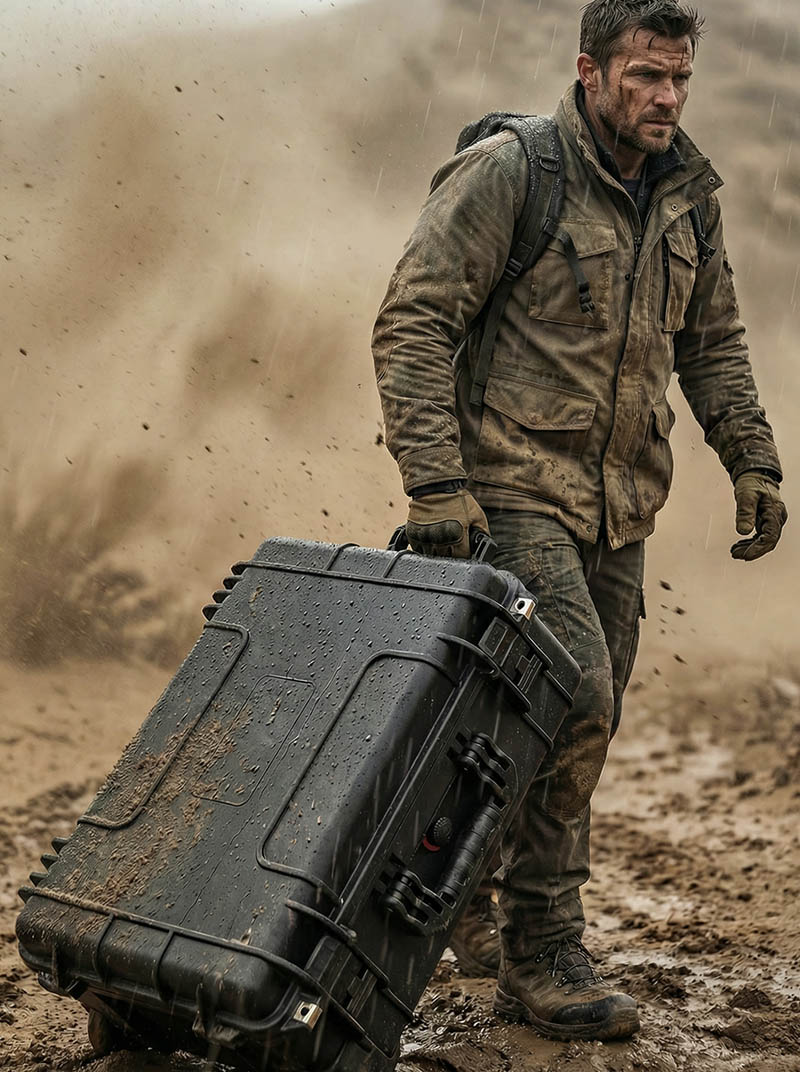 ইন্ডাস্ট্রিয়াল-গ্রেড মোবিলিটি এবং ম্যানুভারিং সিস্টেম: এই ধরনের ভারী-শুল্ক প্রতিরক্ষামূলক কেস সরানোর জন্য সত্যিকারের শিল্প নকশা প্রয়োজন। আমরা এটিকে আরও স্থিতিশীল ট্র্যাকশনের জন্য একটি প্রত্যাহারযোগ্য পুল রড সিস্টেম দিয়ে সজ্জিত করেছি; চারটি বড়-ব্যাস, ভারবহন-সজ্জিত চাকা, পুল রডের নীচে অবস্থান করা, ঢালে বা গাড়ির ভিতরে স্থির থাকা অবস্থায় নিরাপত্তা নিশ্চিত করে। এই সিস্টেমটি একজন একক ব্যক্তিকে সহজেই প্রায় 100 কেজি লোড চালনা করতে দেয়, এটিকে সমতল ভূমিতে একটি নিয়মিত স্যুটকেসের মতো নড়াচড়া করে।