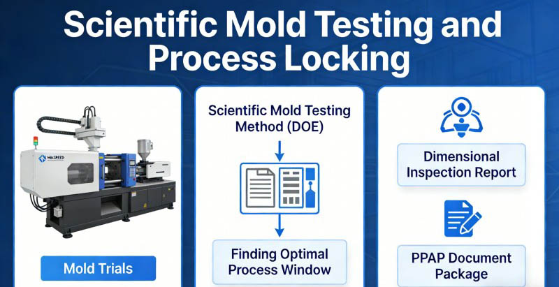 1. দ্রুত প্রোটোটাইপিং এবং DFM: আমরা নকশা চূড়ান্তকরণ ত্বরান্বিত করার জন্য আপনার ধারণার উপর ভিত্তি করে দ্রুত নকশা সম্ভাব্যতা বিশ্লেষণ (DFM) এবং প্রোটোটাইপিং সুপারিশ প্রদান করি। 2. ডেটা-চালিত ছাঁচ ডিজাইন: সম্পূর্ণ 3D ডিজাইনের জন্য পেশাদার সফ্টওয়্যার ব্যবহার করে, "প্রথম ছাঁচের পরীক্ষায় কাছাকাছি-উৎপাদন গুণমান" অর্জনের জন্য প্রবাহ, শীতলকরণ, কাঠামোগত শক্তি এবং ওয়ারপেজের গভীরতার সিমুলেশন সহ। 3. মাইক্রোন-লেভেল প্রিসিশন মেশিনিং: তাপমাত্রা-নিয়ন্ত্রিত কর্মশালায় নির্ভুল সরঞ্জাম ব্যবহার করে, আমরা ±0.02 মিমি এর মধ্যে সমালোচনামূলক মাত্রিক সহনশীলতা নিশ্চিত করি। 4. বৈজ্ঞানিক ট্রায়াল ছাঁচনির্মাণ এবং প্রক্রিয়া লকডাউন: আমাদের উচ্চ-গতির নির্ভুলতা ইনজেকশন ছাঁচনির্মাণ মেশিনে ট্রায়াল মোল্ডিং পরিচালনা করুন। সর্বোত্তম প্রক্রিয়া উইন্ডো সনাক্ত করতে, ব্যাপক মাত্রিক পরিদর্শন প্রতিবেদন এবং PPAP ডকুমেন্টেশন প্যাকেজ সরবরাহ করতে পরীক্ষা-নিরীক্ষার নকশা (DOE) নিয়োগ করুন। 5. উত্পাদন সমর্থন এবং ক্রমাগত অপ্টিমাইজেশান: আমরা সাইটে ব্যাপক উত্পাদন সহায়তা প্রদান করি এবং উত্পাদন ডেটার উপর ভিত্তি করে চলমান অপ্টিমাইজেশন সঞ্চালন করি, পণ্য আপগ্রেড এবং ব্যয় হ্রাসের জন্য প্রকৌশল সুপারিশগুলি অফার করি।